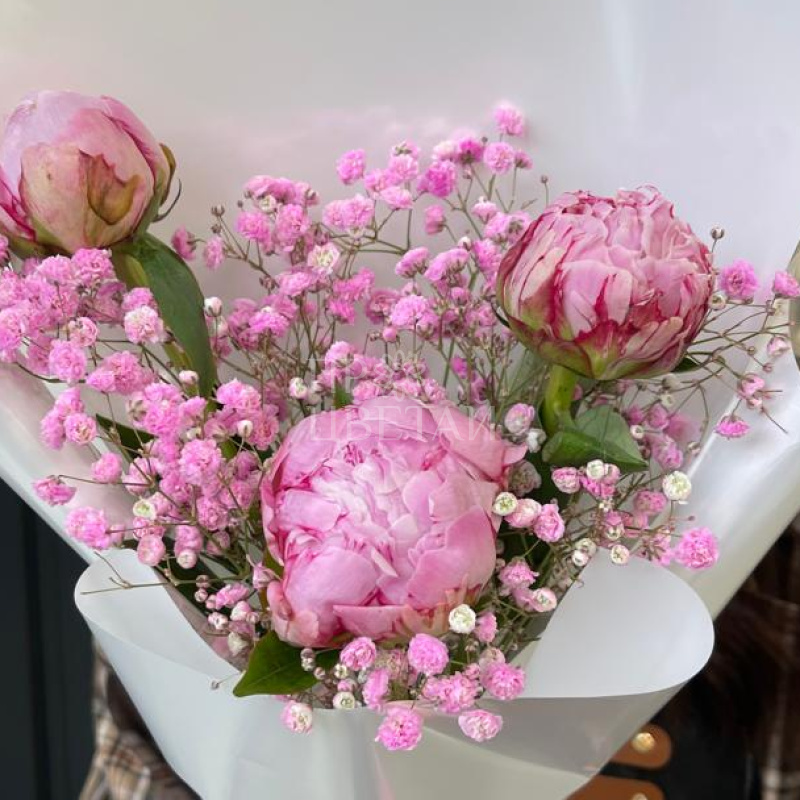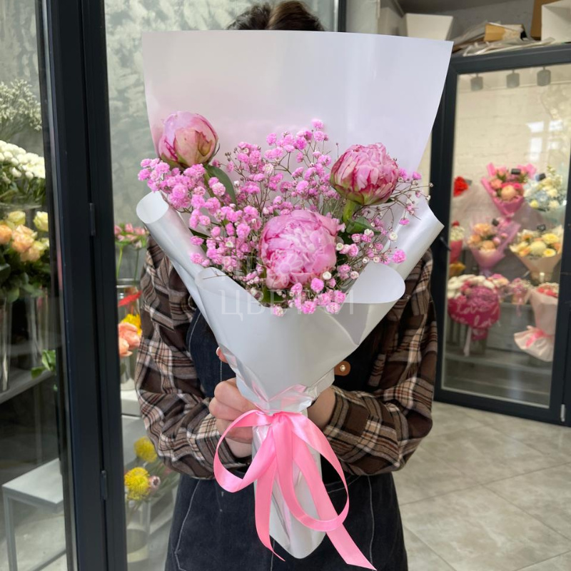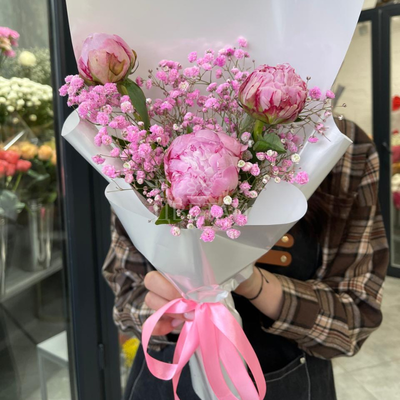 Порадуйте близкого человека таким прекрасным мини букетиком из всеми любимыми пионами