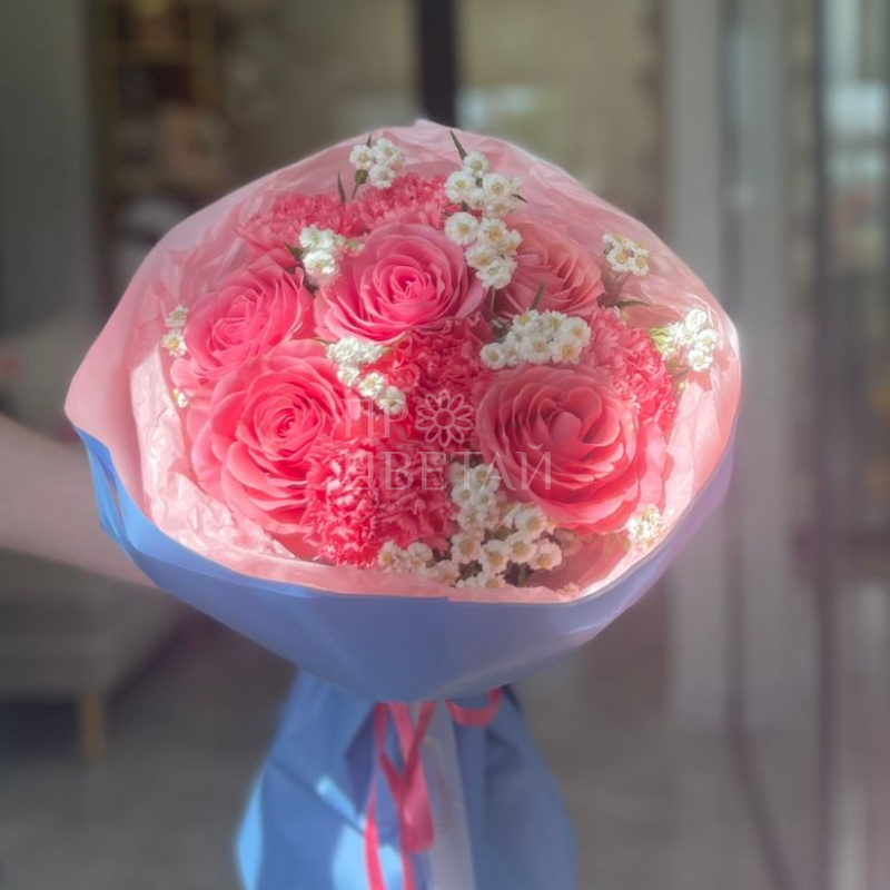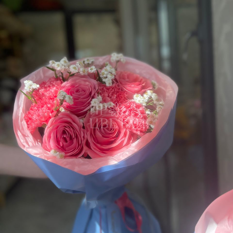 Смотрите также категории: Букеты с гвоздикой Сборные букеты Букеты с хризантемами Розовые розы Цветы домой 51 роза Букеты с гипсофилой