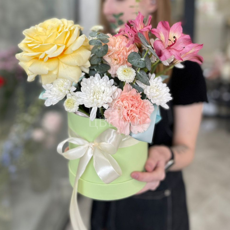 Смотрите также категории: Композиция в шляпной коробке Букеты с гипсофилой Букеты с хризантемами Розовые розы Сборные букеты Цветы домой Монобукеты