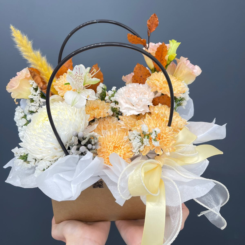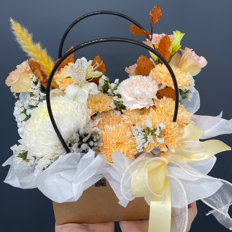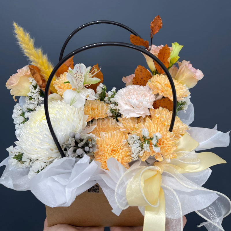 Смотрите также категории: Осенняя коллекция Белые розы Композиция в шляпной коробке Цветы домой Сборные букеты Букеты с гипсофилой Букеты с гвоздикой