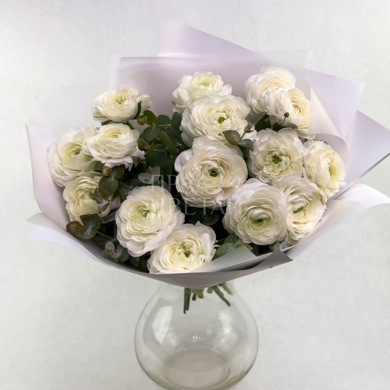 Белые ранункулюсы 15шт «Баунти»
