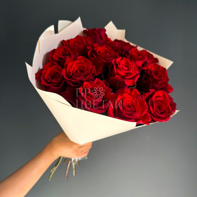 Классический букет из красных роз станет прекрасным подарком на любое торжество
